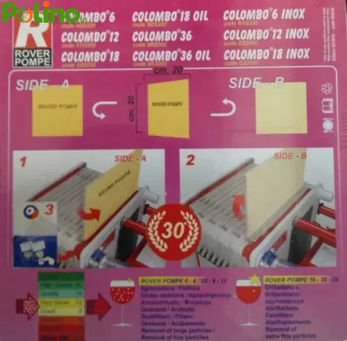 Cartoni Filtranti 20 x 20 Cm Per Pompe Rover Filtro Per Vino cartone Da 25 Unità
