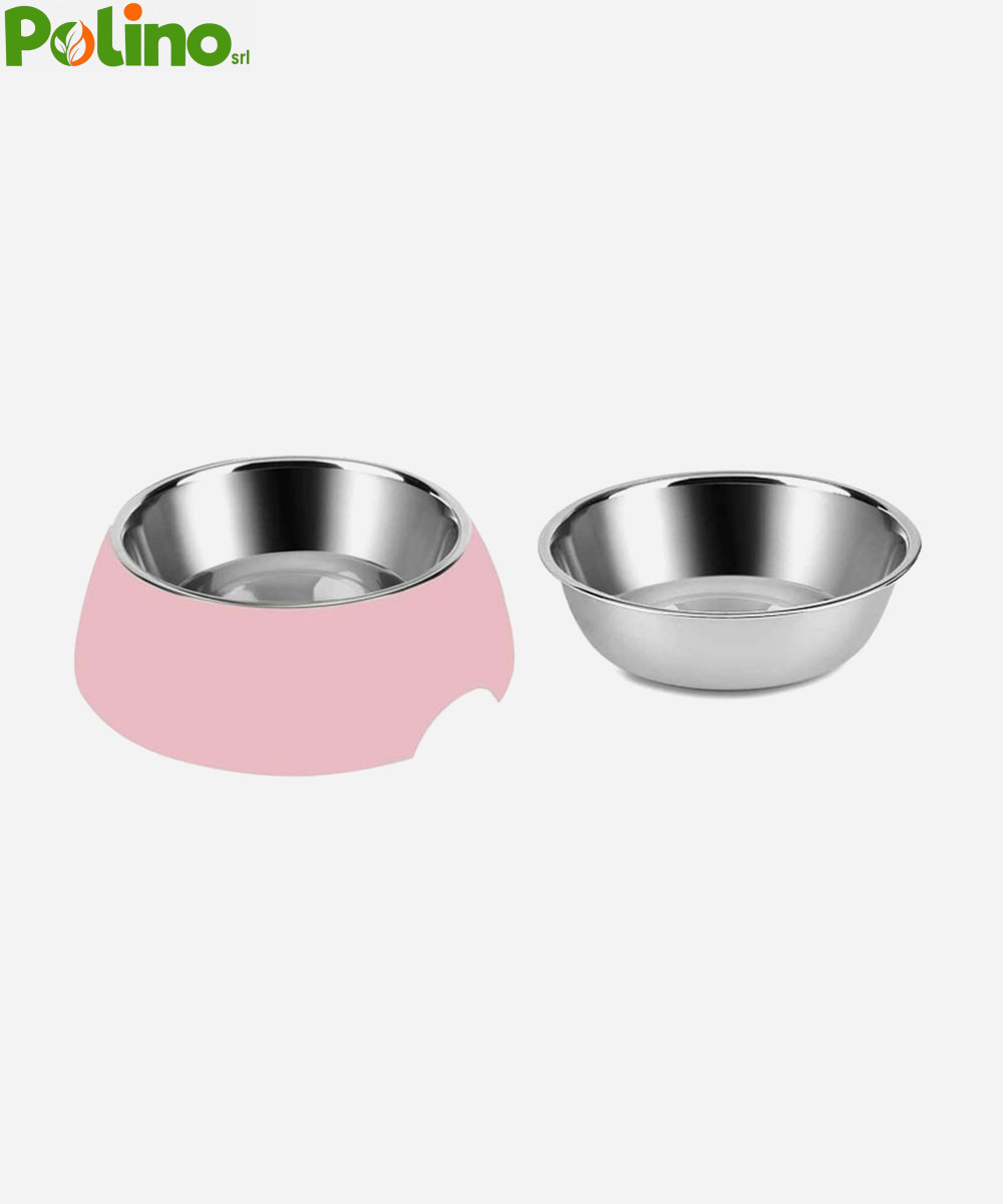 The pet bowl is combined with 1 stainless steel bowl and 1 bigger colored outer Melamine pot – one for food, one for water. The 2 parts can be used separately or together as 1 thick bowl.
