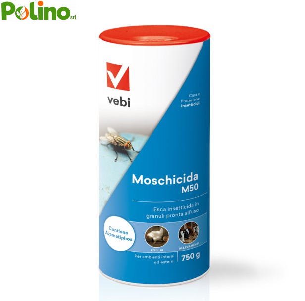 MOSCHICIDA M50 è un insetticida in polvere micro-granulare pronto all’uso con forte potere attrattivo, idoneo per la lotta contro insetti volanti (mosca, moscone, mosca cavallina, tafano). MOSCHICIDA M50, grazie alla speciale formulazione in granuli pronti all’uso, si presta ad essere utilizzato come esca pronta all’uso, diluito in acqua per effettuare irrorazioni di pareti oppure per essere pennellato su muri e per la preparazione di trappole