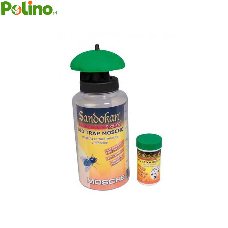 Funzionale trappola ecologica per l’eliminazione di mosche e mosconi per annegamento, fornita di contenitore di plastica, è appendibile e contiene 30g di polvere attrattiva idrosolubile. Marchio Sandokan