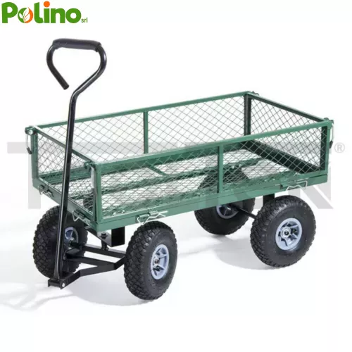 CARRELLO GIARDINO 4 RUOTE SPONDE RIBALTABILI METALLO 95x50x52.5cm