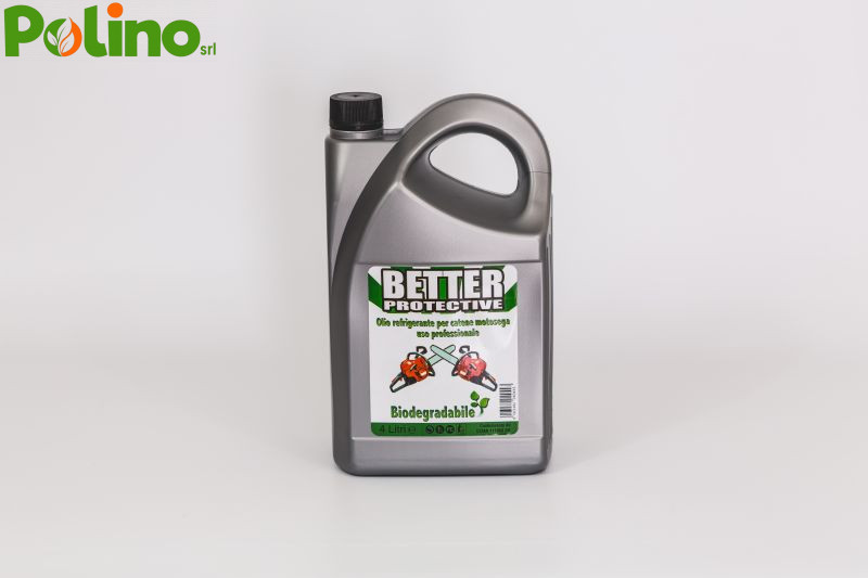 L’olio protettivo Better Protective e’ un lubrificante appositamente studiato per le barre e le catene delle motoseghe ed elettroseghe. E’ composto da olio vegetale, con biodegradabilita’ oltre il 90 %, ed additivi, anch’essi vegetali, studiati appositamente in laboratorio per raggiungere il massimo equilibrio tra rendimento del lubrificante (anche in situazioni critiche) e rispetto dell’ambiente.